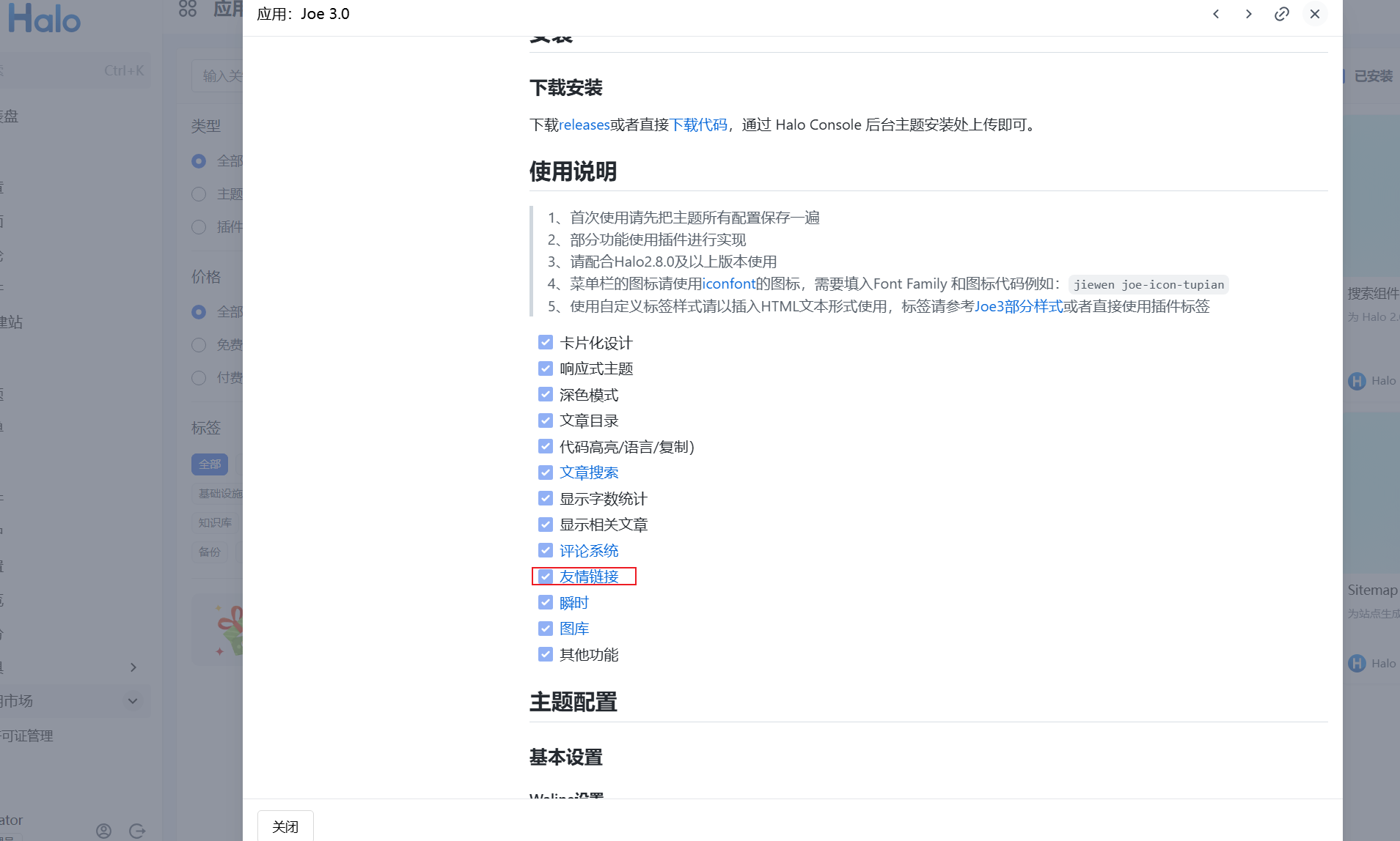 首先我们需要选择一个支持友链的主题,在安装主题前可以查看主题介绍里面是否支持友链功能,我这里使用的是Joe3.0的主题,该主题应该是功能最多的主题。