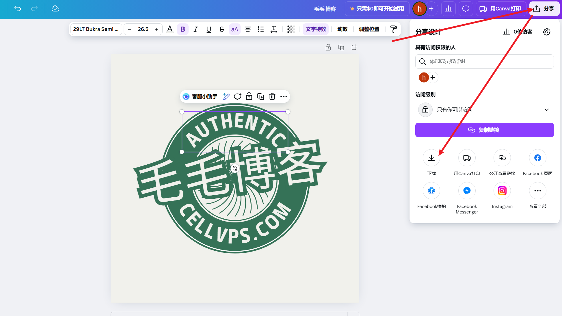 自己设计好后,点击右上角的分享,点击下载保存到本地。